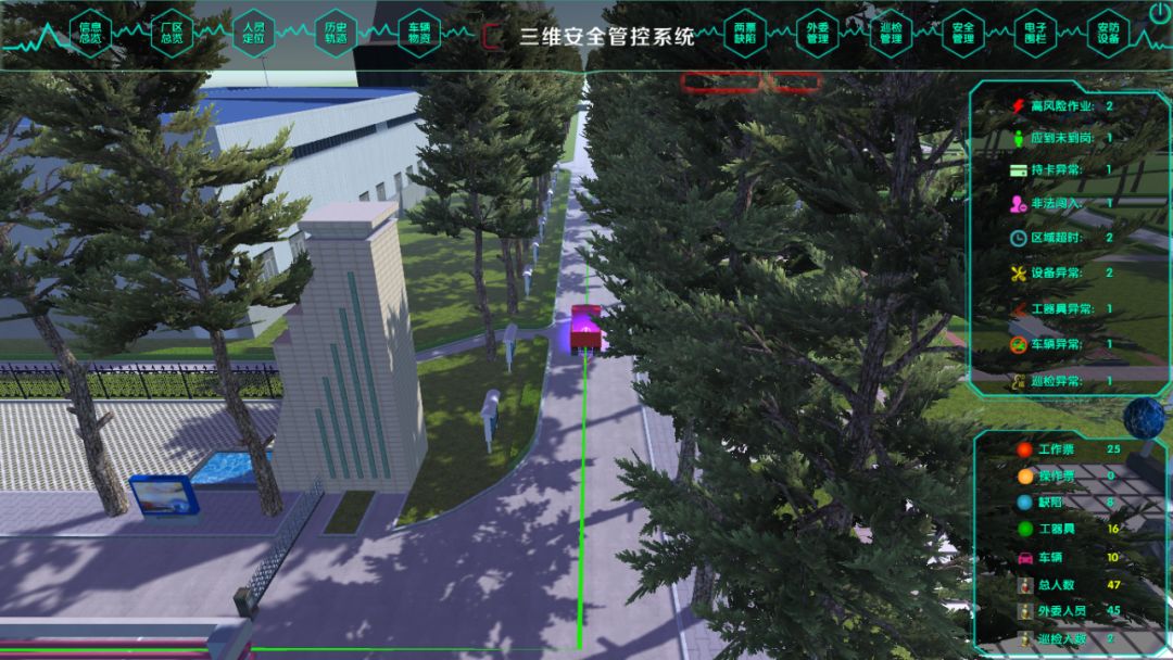 進出廠區(qū)的運送固廢車輛,?;奋囕v、外來車輛、重型機械等安裝GPS定位。在系統(tǒng)中為車輛預(yù)設(shè)固定路線,并通過GPS進行追蹤,實現(xiàn)各類車輛的實時位置監(jiān)督、跟蹤其行駛軌跡,一旦發(fā)現(xiàn)偏離預(yù)設(shè)路線立即報警并推送相關(guān)管理人員。