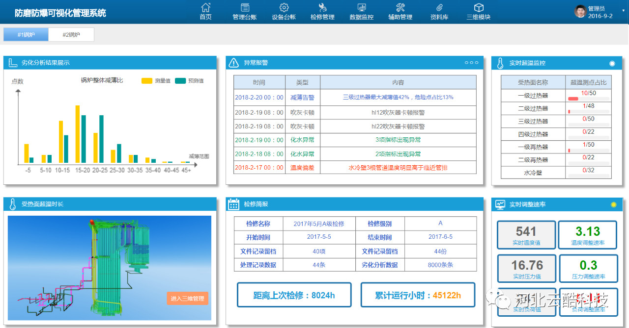云酷科技多年來專注于電廠安全管理業(yè)務,針對鍋爐安全問題所研發(fā)的三維可視化鍋爐防磨防爆管理系統(tǒng)充分結合了先進的科技技術與電廠實際經驗,為鍋爐安全管理、四管泄爆問題提供管理工具。